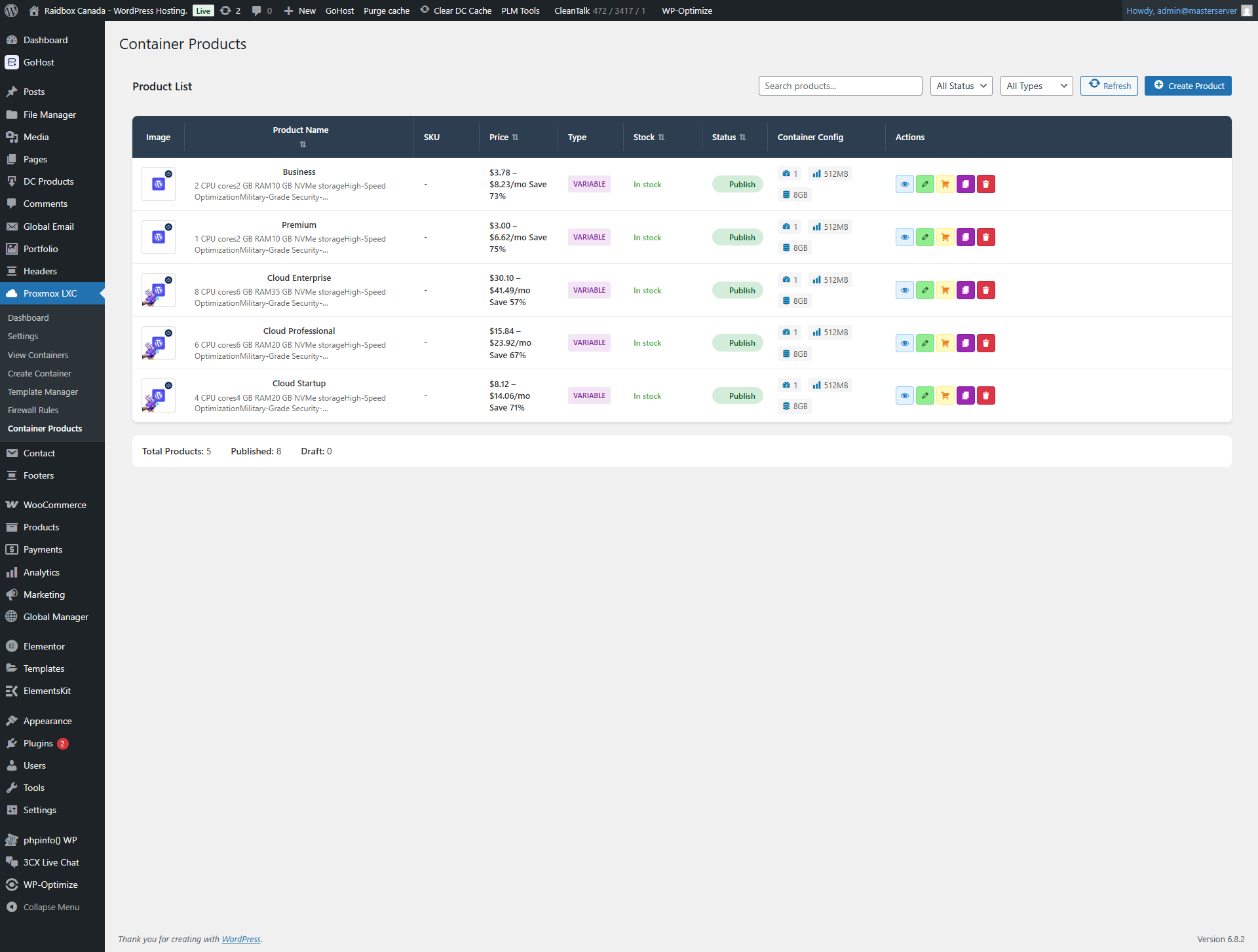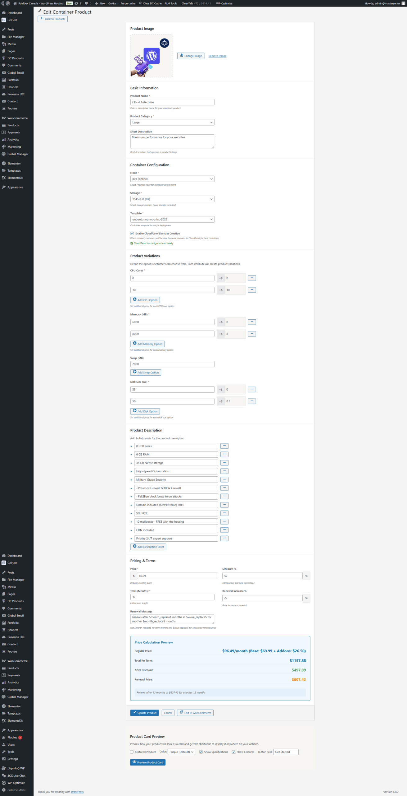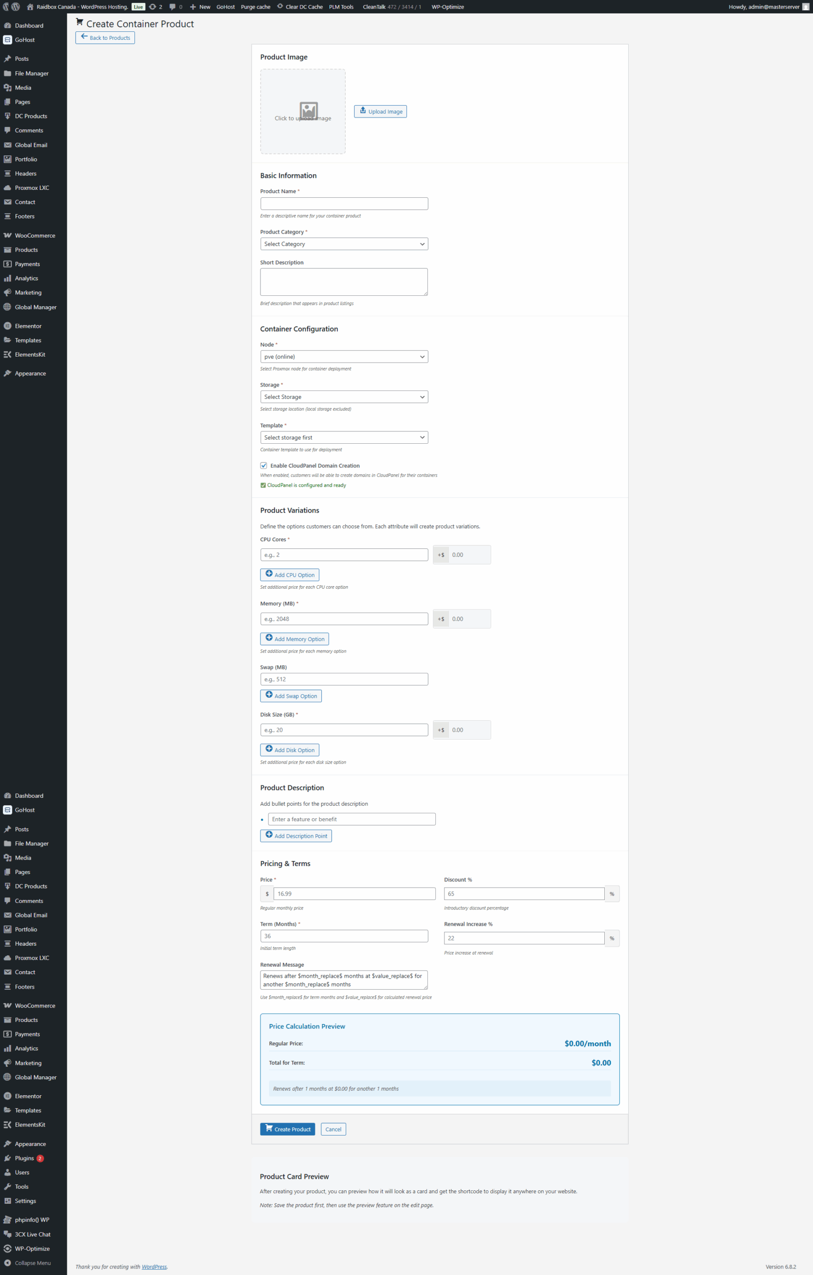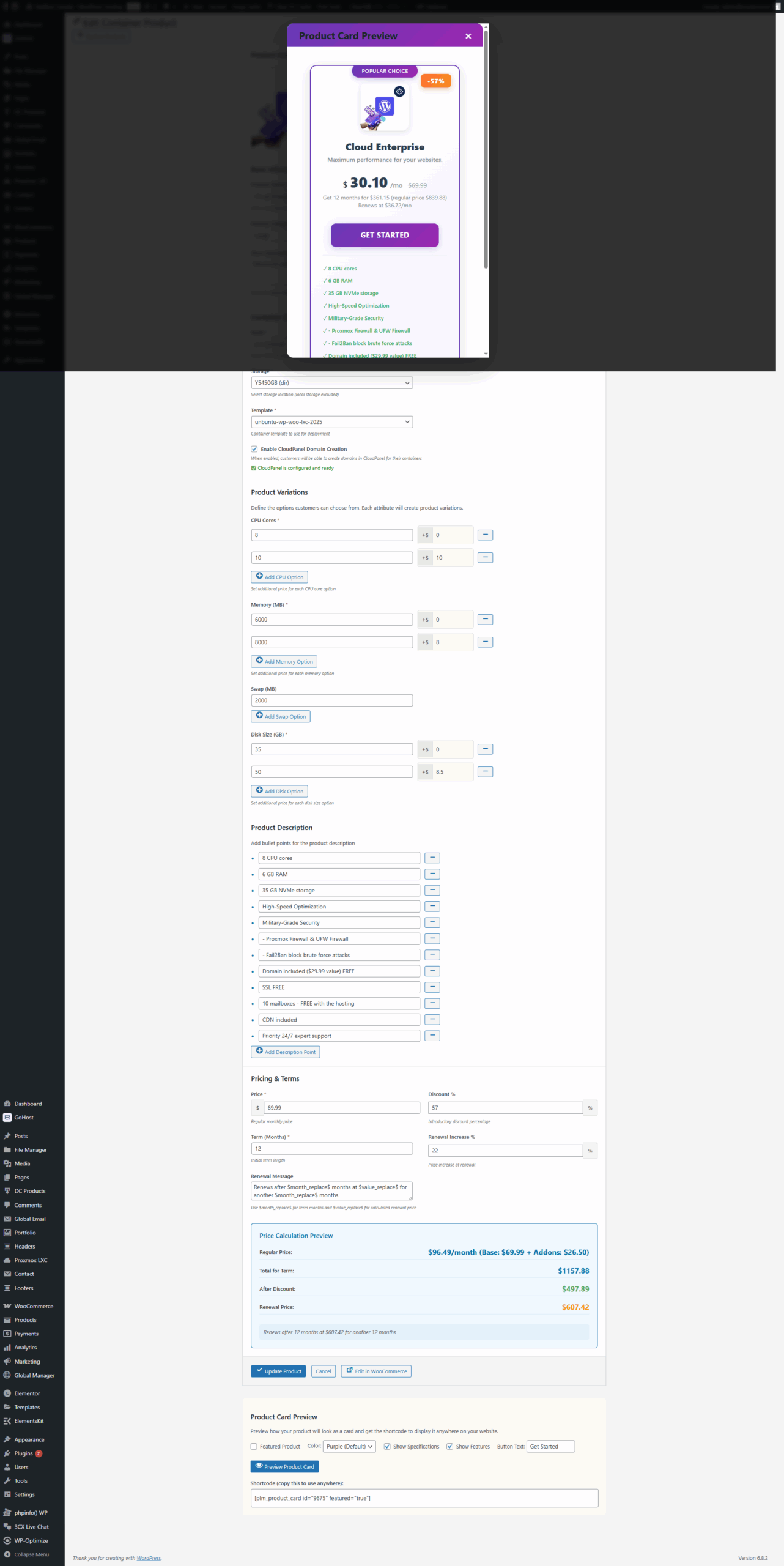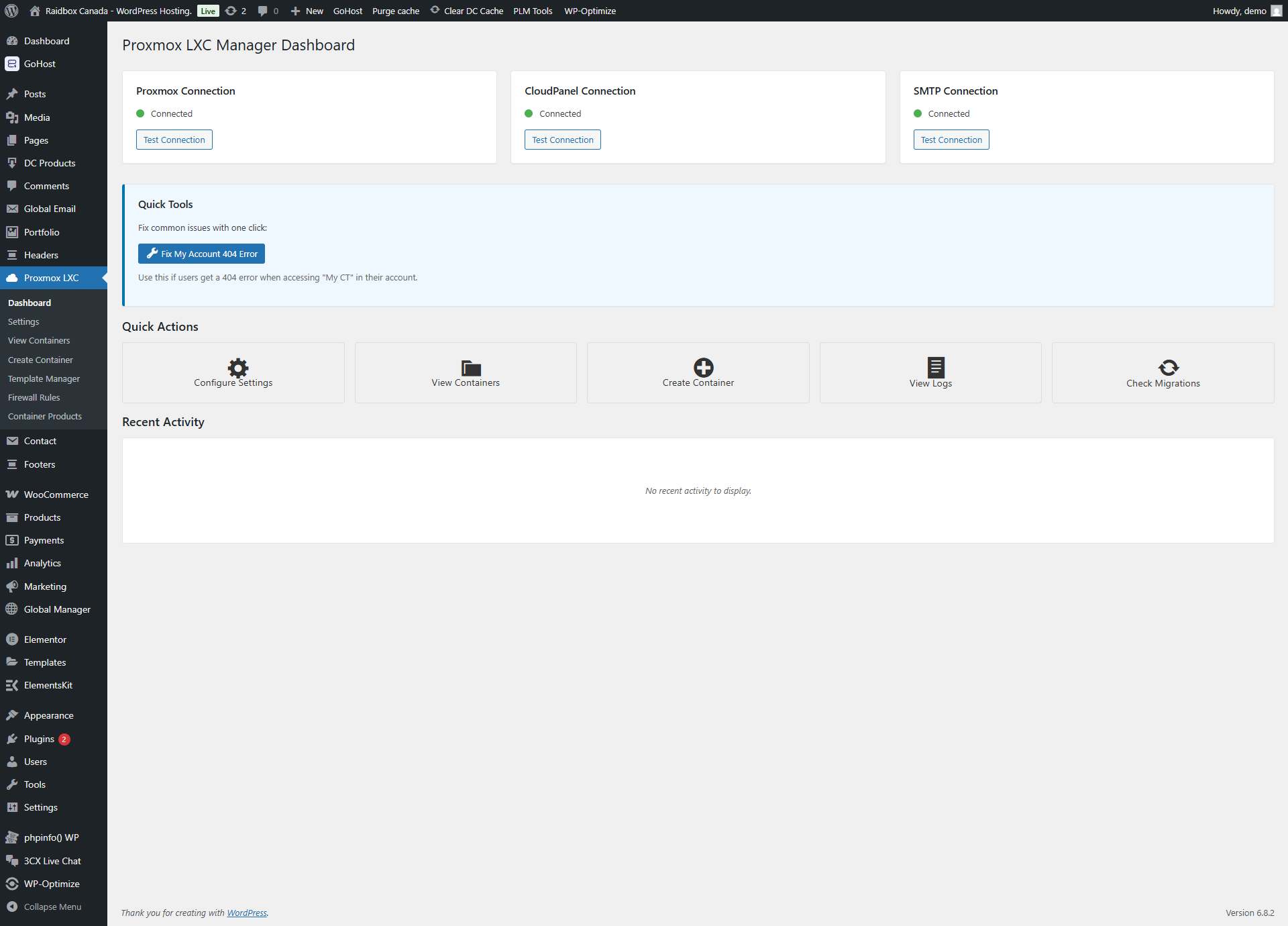 Seamlessly manage Proxmox LXC containers from your WordPress site. Create, start, stop, and edit containers, manage storage, templates, and IPs, and control user access all from an intuitive WordPress interface. Perfect for agencies, hosting providers, and IT teams.